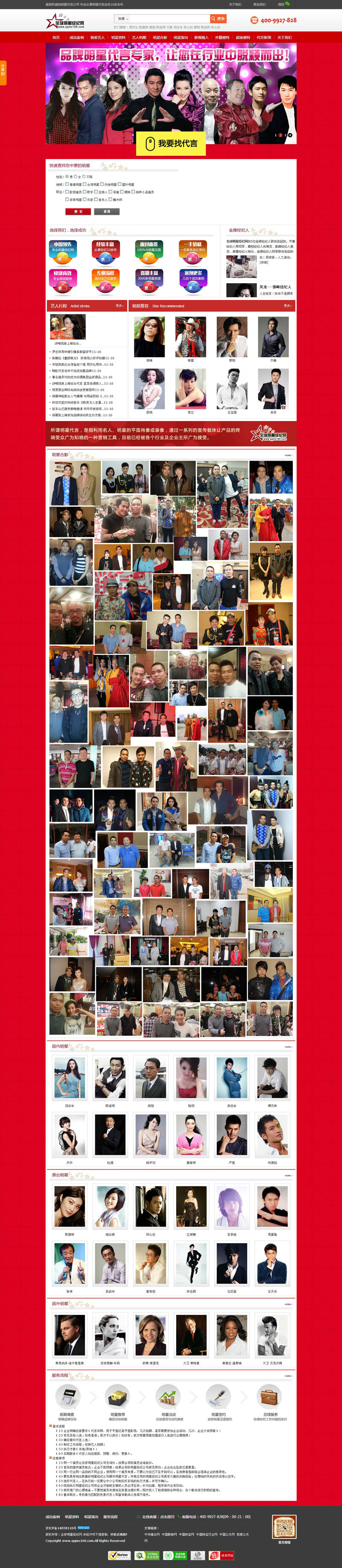 本網(wǎng)站是北京恒美時代文化傳媒有限公司、北京中視星海文化發(fā)展有限公司在網(wǎng)絡上的主要推廣平臺,公司主要從事明星經(jīng)紀、廣告代言、演出策劃及組織、新人包裝、、唱片發(fā)行、項目推廣、城市宣傳片歌曲MTV制作、影視劇組藝人統(tǒng)籌、歌友會、廣告宣傳片制作、品牌策劃等演藝活動。