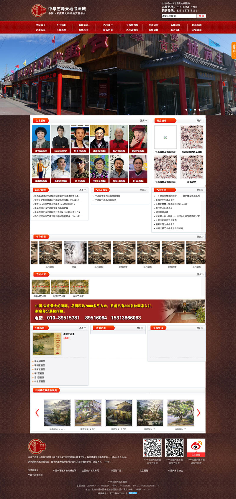 為了給藝術(shù)家們營(yíng)造更好的藝術(shù)氛圍、創(chuàng)作空間,擴(kuò)大對(duì)外交流途徑,將文化藝術(shù)資源與市場(chǎng)連接、社會(huì)化運(yùn)作平臺(tái)很好的結(jié)合在一起,“中華藝源天地書畫城”組織文化藝術(shù)產(chǎn)業(yè)投資推廣中心、畫廊畫庫、文化藝術(shù)交流中心、網(wǎng)站推廣活動(dòng)。努力把“中華藝源天地”建設(shè)成為全國(guó)性的藝術(shù)創(chuàng)作基地、藝術(shù)品交易基地及宋莊文化創(chuàng)意產(chǎn)業(yè)示范基地。“中華藝源天地書畫城”正以鮮明的藝術(shù)特色向世人展示著獨(dú)特的魅力和風(fēng)采!