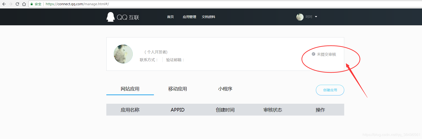 3.提交資料之后,申請狀態(tài)顯示:未提交審核,如圖